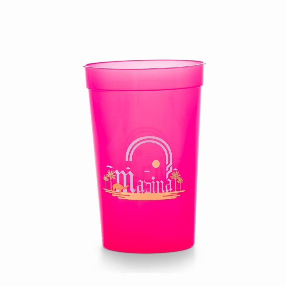 High-quality pink plastic cup featuring the name "Madina" in an Arabic style, surrounded by palm tree and camel icons for a wonderful traditional touch. Made from safe, lightweight plastic, this cup is ideal for daily use at home or during travel. Its attractive and modern design makes it a unique piece that expresses love for Madina, adding brightness to your daily moments. It also serves as a beautiful gift that reflects Saudi heritage and culture.